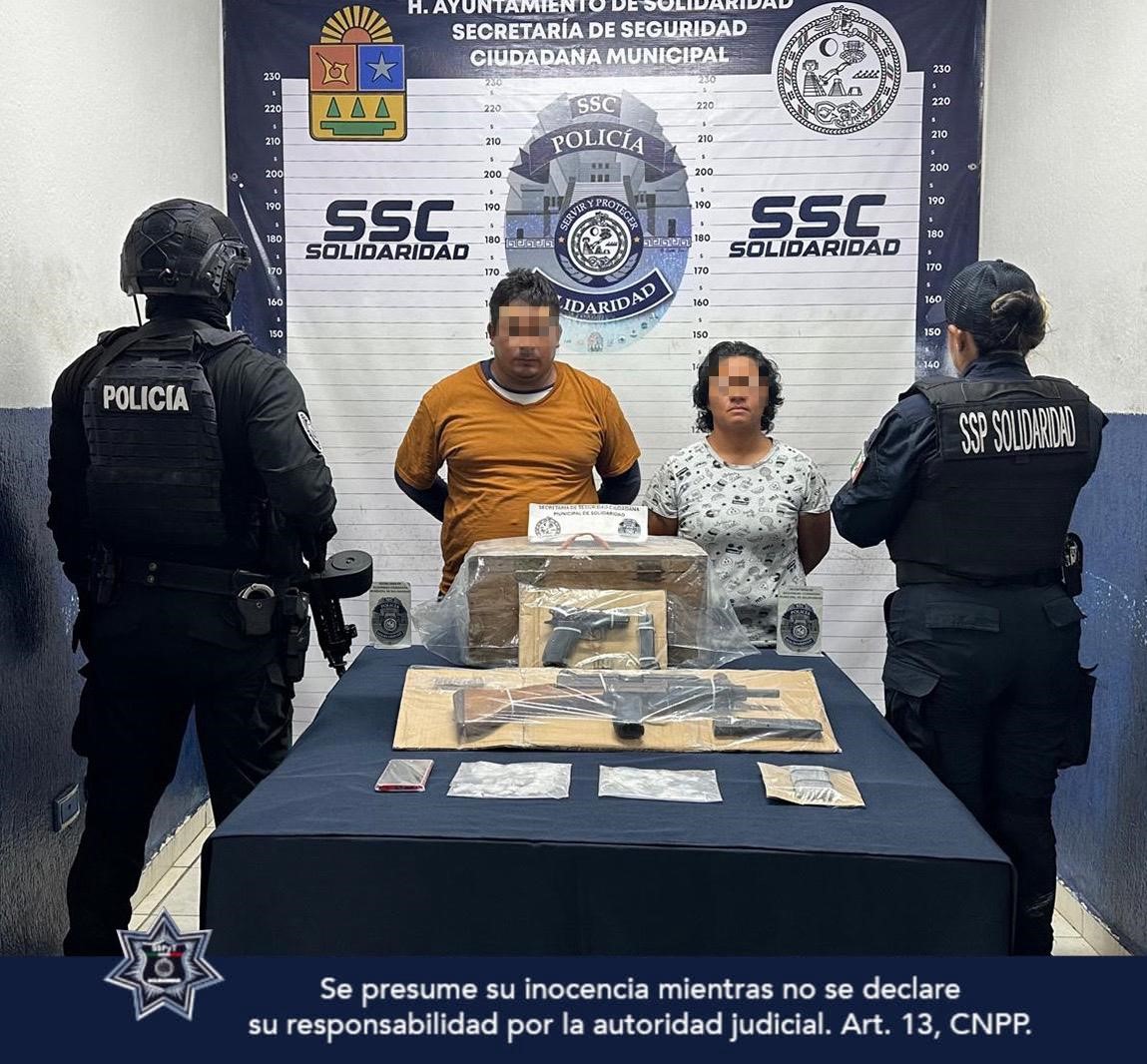 En el lugar se realizó la detención de Diego “N,” de 30 años, y Gracelida “N,” de 36 años, quien trabaja para la administración del fraccionamiento, ambos originarios de Tabasco, comentaron no pertenecer a alguna organización delictiva pero tampoco pudieron acreditar el origen de las drogas y las armas, por lo que junto a lo incautado y el vehículo fueron puestos a disposición de la Fiscalía General del Estado para los fines legales correspondientes por delitos contra la salud en la modalidad de narcotráfico y la violación a la Ley Federal de Armas de Fuego y Explosivos.