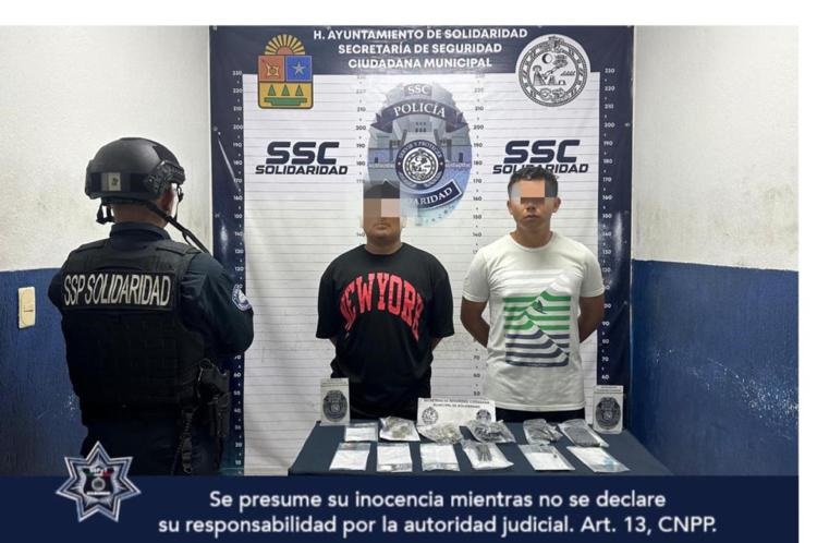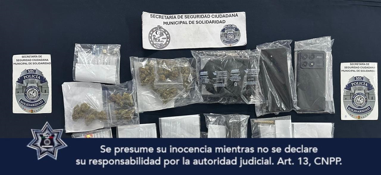 Playa del Carmen, a 14 de noviembre. – En el marco del operativo de vigilancia de la Secretaria de Seguridad Ciudadana Municipal de Solidaridad que tiene el objetivo de prevenir y disuadir delitos, la Secretaría de Seguridad Ciudadana Municipal de Solidaridad aseguró a dos personas por presuntos delitos contra la salud en las inmediaciones de la “Cruz de Servicios”.