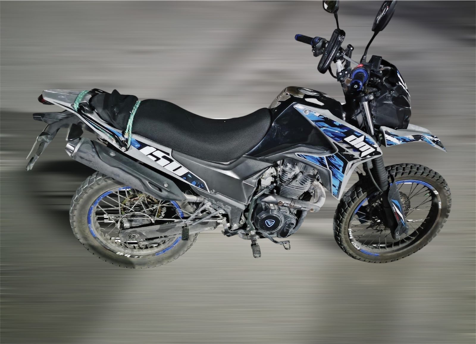 También se le decomisó un teléfono celular y la motocicleta Italika tipo DM150, de color azul con gris y negro, con placas de Quintana Roo.