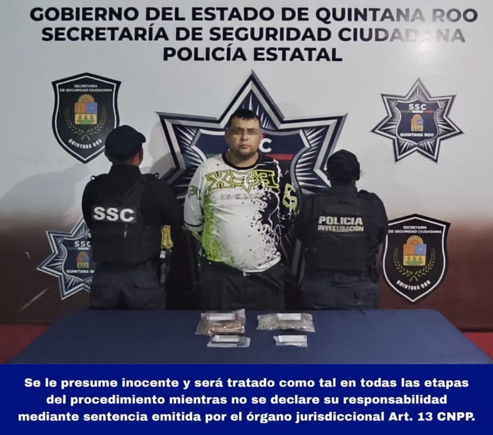Cancún, 17 de agosto.- Elementos del Grupo de Investigación de la Secretaría de Seguridad Ciudadana detuvieron a un hombre identificado como Gustavo Adolfo “N”, presunto implicado en delitos contra la salud, durante un operativo de vigilancia realizado en la Supermanzana 216 de Cancún.