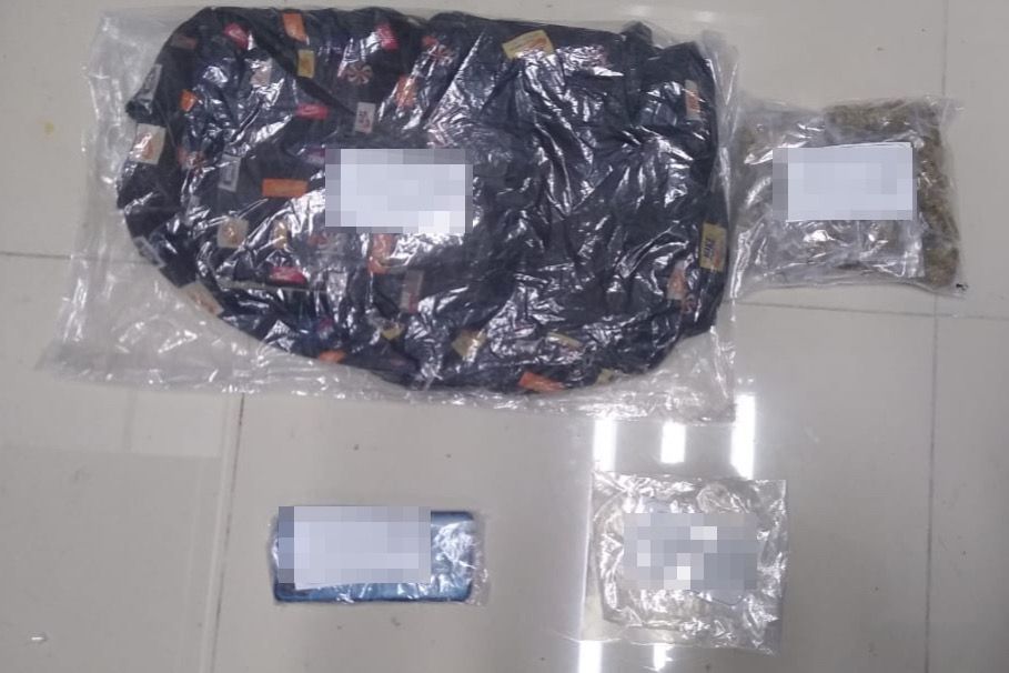 Durante la inspección, las autoridades aseguraron una mochila negra con logotipos, una bolsa mediana transparente con 33 envoltorios tipo ziploc que contenían el presunto narcótico, además de un teléfono celular Samsung negro.
