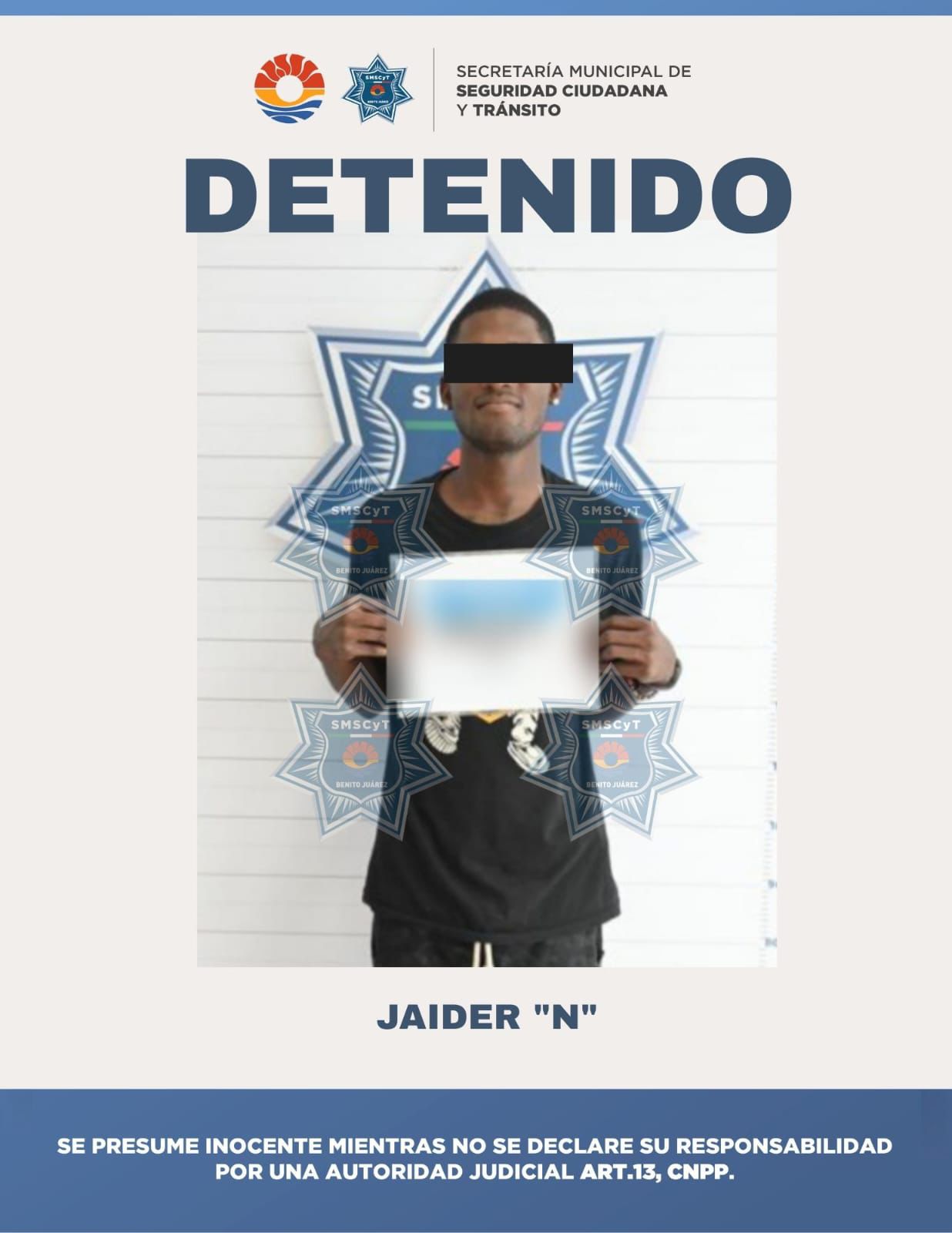 Cancún, 19 de junio. – Elementos de la Secretaría Municipal de Seguridad Ciudadana y Tránsito (SMSCyT) de Benito Juárez lograron la detención de un joven de 22 años identificado como Jaider “N”, por su presunta responsabilidad en el delito de encubrimiento, al conducir una motocicleta con reporte de robo.