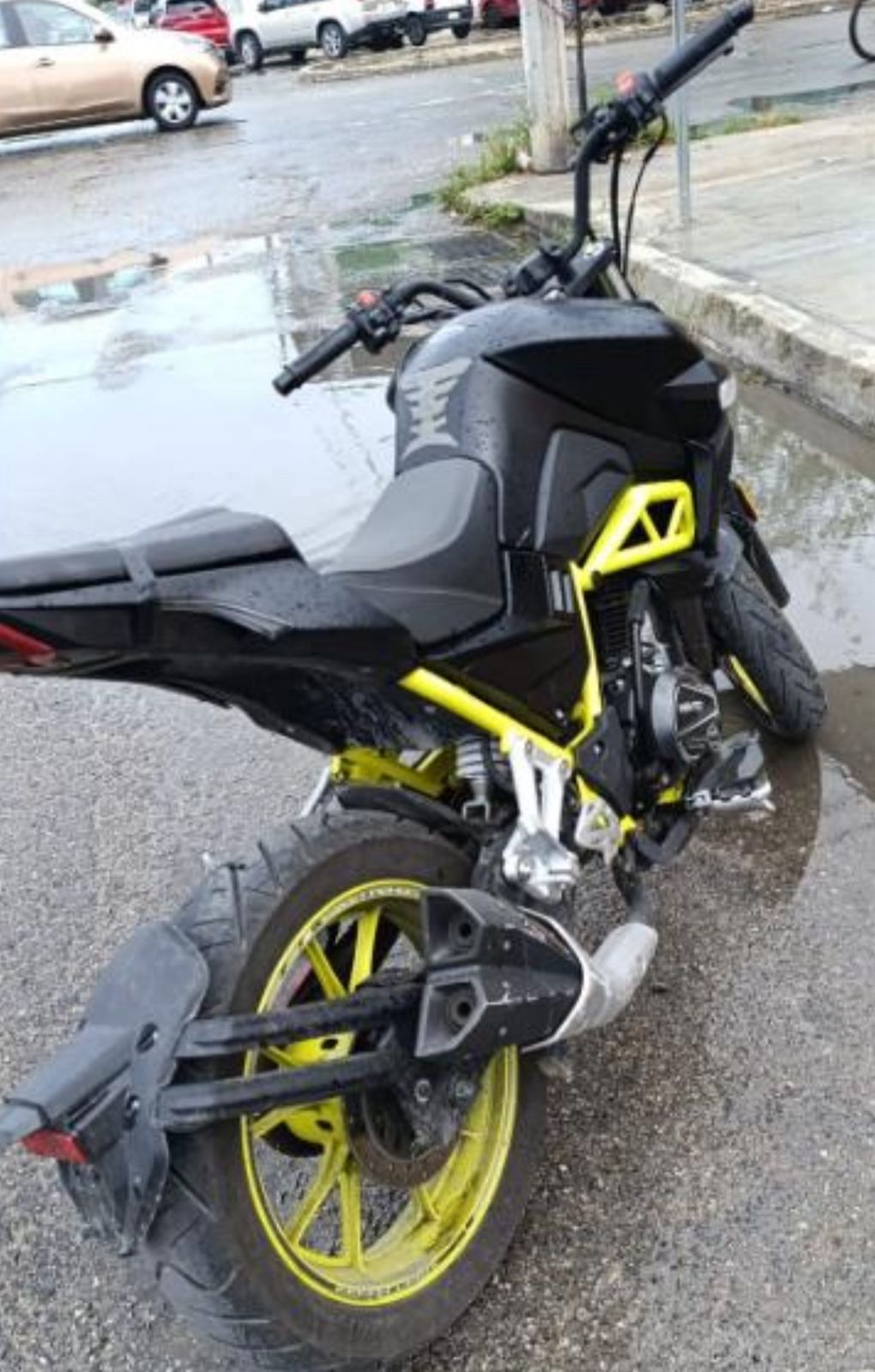 Al ser interceptado, el sujeto reaccionó de manera agresiva y lanzó insultos a los agentes. Tras realizar la inspección correspondiente y verificar el número de serie de la motocicleta —una Vento tipo cross, color amarillo con negro—, se confirmó que el vehículo contaba con reporte de robo vigente desde el 5 de abril de 2024.