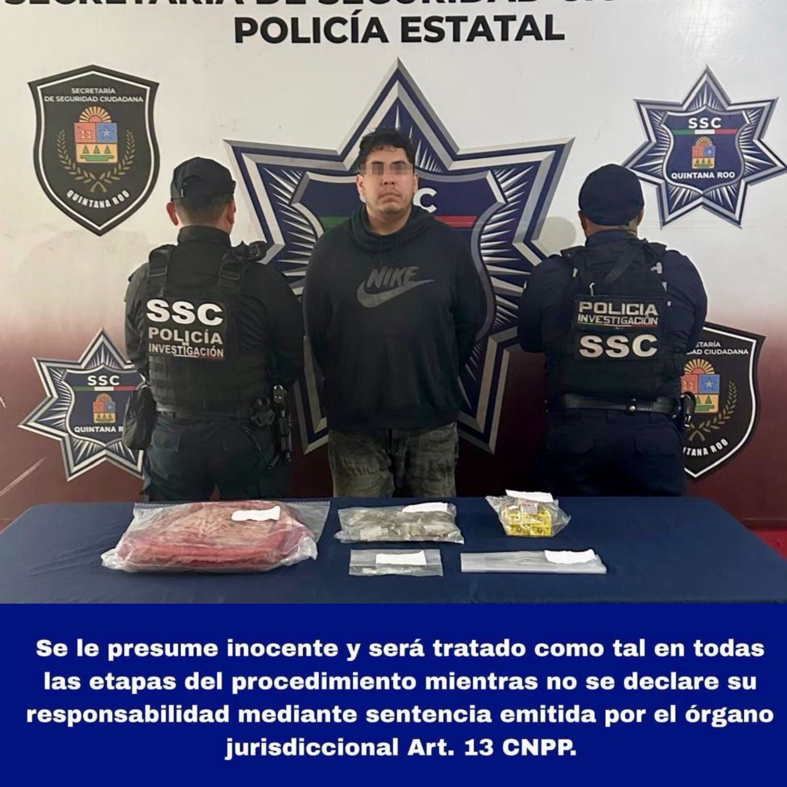 Cancún, 6 de noviembre. – Agentes de la Secretaría de Seguridad Ciudadana (SSC) detuvieron a Brayan Axell “N” por su presunta implicación en delitos contra la salud, en el municipio de Benito Juárez.