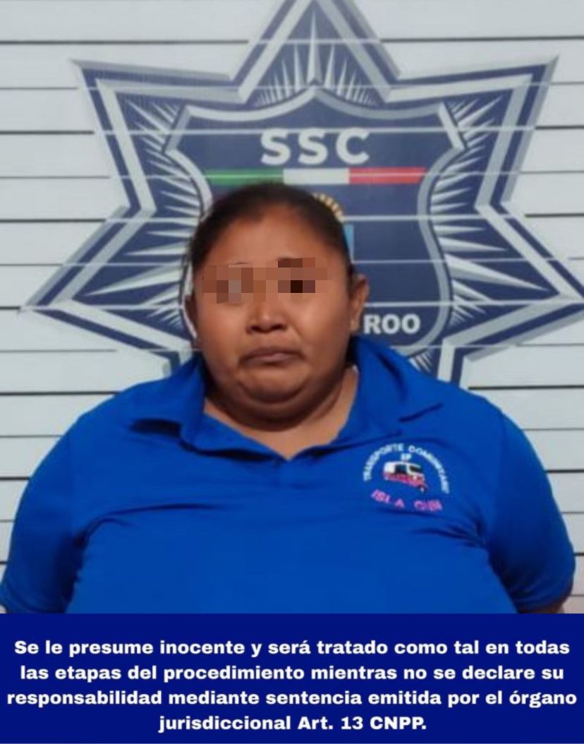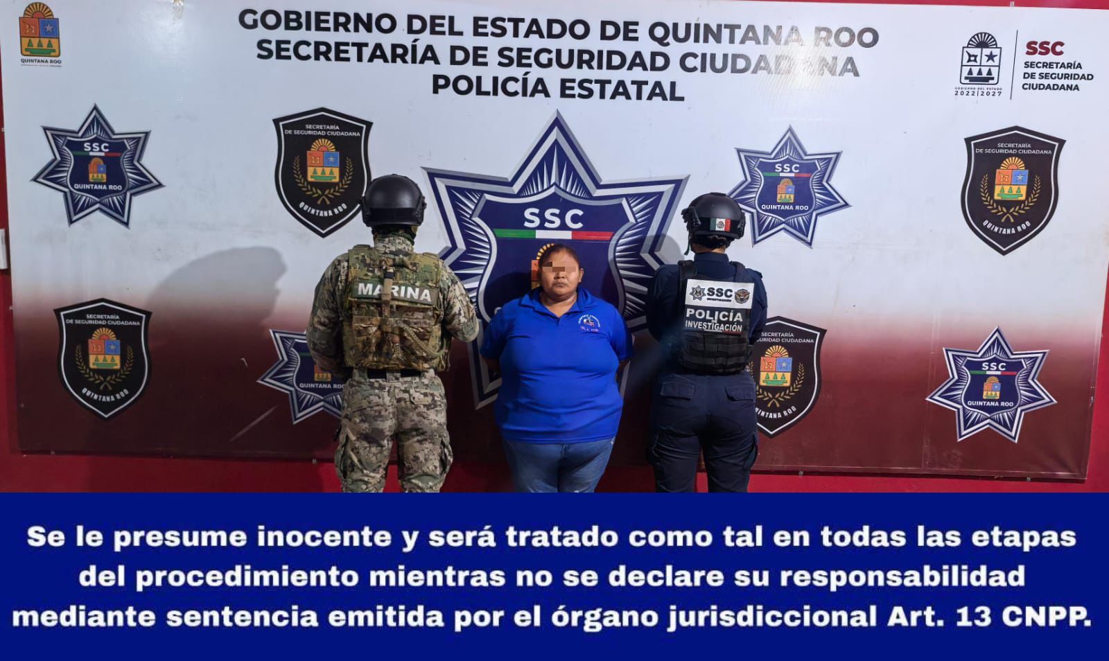 Cancún, 15 de enero.- La Secretaría de Seguridad Ciudadana, en colaboración con la Secretaría de Marina, realizó la detención de Nayeli Pamela N en la supermanzana 91 de este municipio. La mujer es investigada por su presunta responsabilidad en el delito de desobediencia y resistencia de particulares, además de ser señalada por su probable participación en una serie de robos con un modo de operación específico.