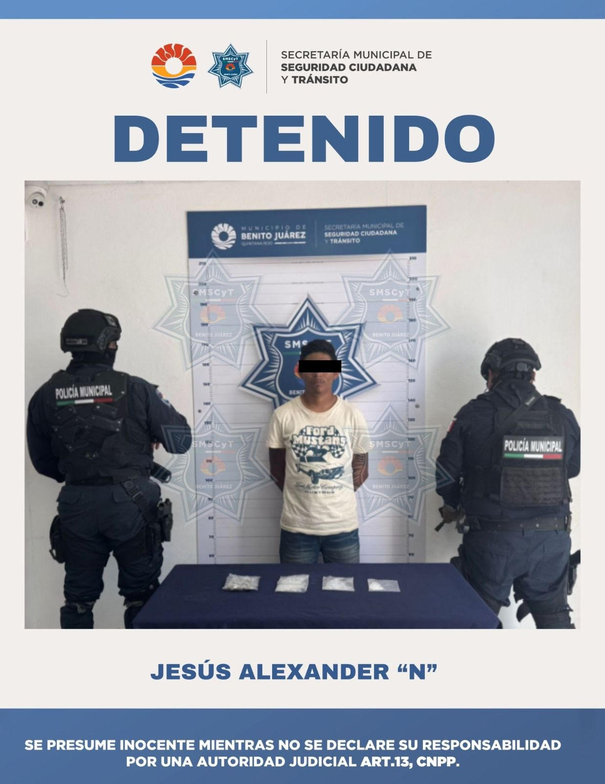 El sujeto, identificado como Jesús Alexander “N”, de 28 años, fue sorprendido cuando arrojó al suelo una bolsa transparente que contenía diversos envoltorios con presunta droga, acción que alertó a los agentes de la Guardia Nacional, la Fiscalía General del Estado y la Secretaría Municipal de Seguridad Ciudadana y Tránsito.