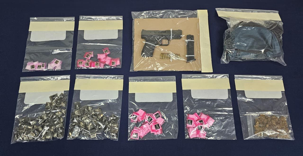 El material asegurado incluye: 62 bolsitas de plástico rosado con polvo blanco similar a la cocaína, 34 bolsitas con fragmentos sólidos transparentes similares al cristal y 100 bolsitas de plástico negro con fragmentos sólidos de color blanco similares al crack.
