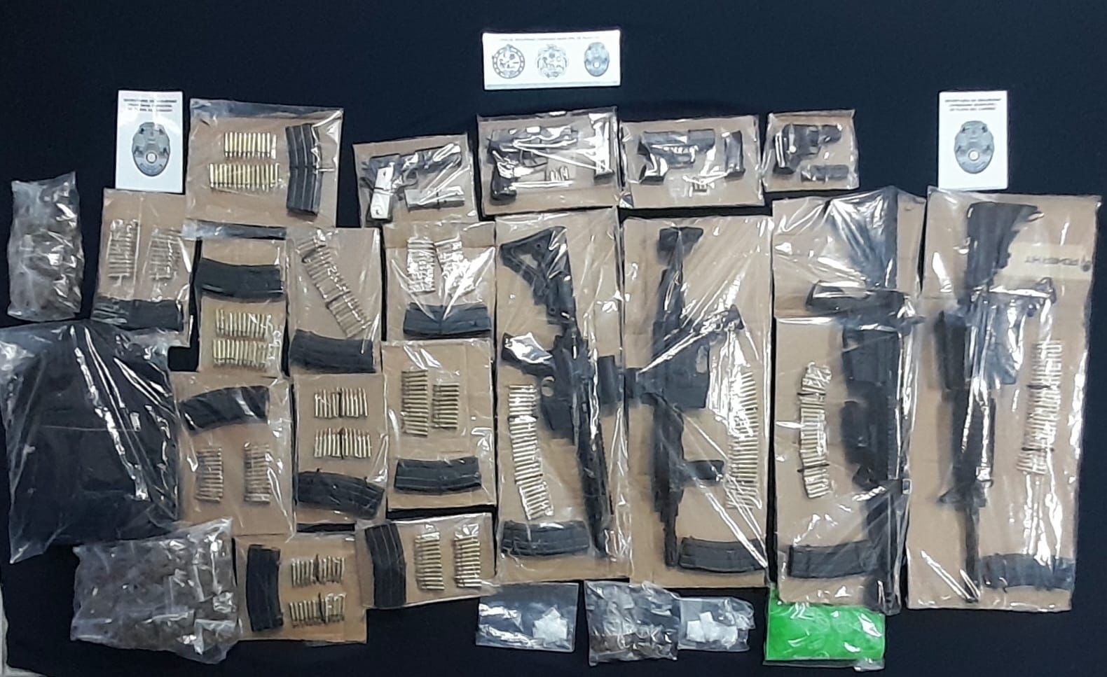 Asimismo, como resultado del procedimiento se aseguraron 4  armas cortas y cuatro armas largas, cartuchos útiles, así como diversos cargadores.