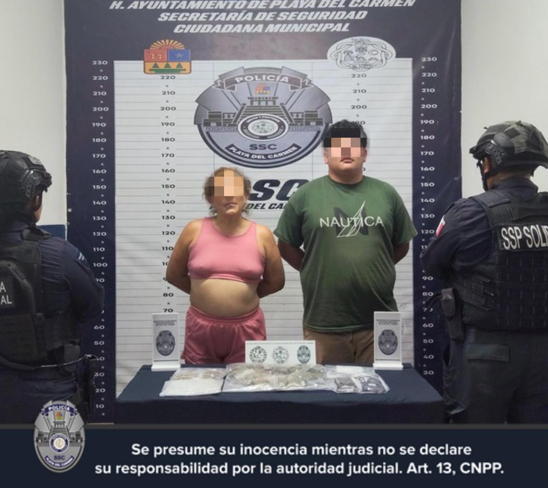 Julio “N”, de 23 años, originario de Yucatán, y Nubia “N”, de 41 años, originaria de Quintana Roo, fueron puestos a disposición de la Fiscalía Especializada en Delitos Contra la Salud en su Modalidad de Narcomenudeo para los fines legales correspondientes.