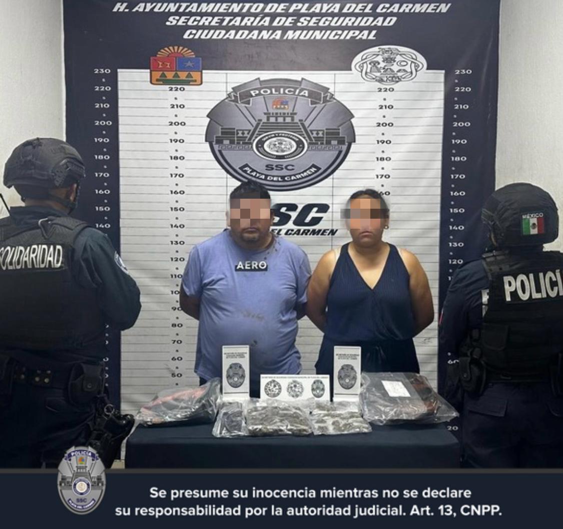Detienen a Pareja por Presuntos Delitos Contra la Salud en el Filtro Policial 1 en la Zona Norte de Playa del Carmen