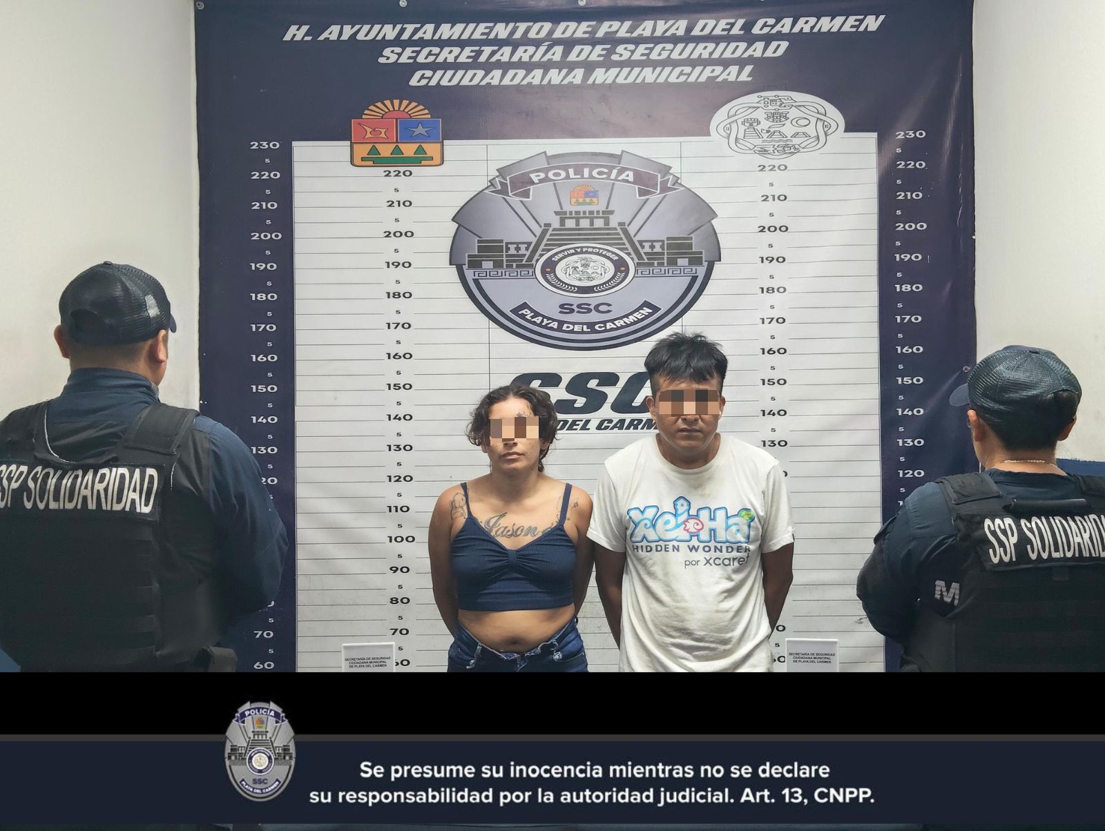 Playa del Carmen, a 31 de agosto.-  En acciones de prevención y vigilancia implementadas por la Secretaría de Seguridad Ciudadana de Playa del Carmen, fueron detenidos José Leonides N., de 35 años de edad, originario de Yucatán, y Marysol N., de 29 años, originaria de Cozumel, por su probable participación en hechos constitutivos de delitos contra la salud.