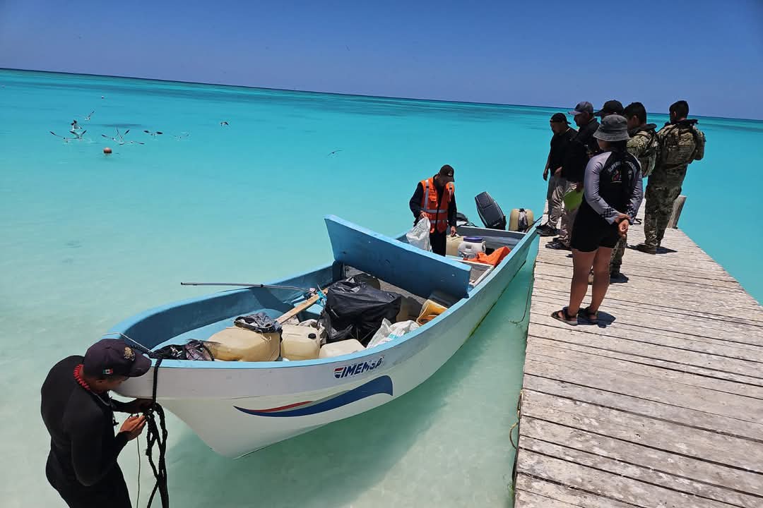De acuerdo con lo que informó la Secretaría de Marina, su personal del destacamento de Isla Pérez avistó una embarcación menor con tres tripulantes que les pidieron apoyo, mencionando que en días pasados habían salido de la Caleta de Progreso, y no pudieron regresar porque no tenían suficiente combustible.