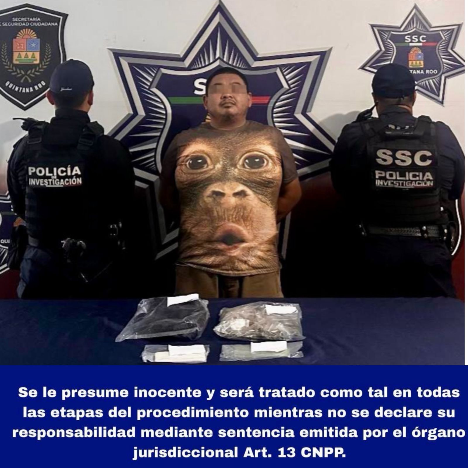 Cancún, 3 de septiembre.- Elementos de la Secretaría de Seguridad Ciudadana aseguraron a un hombre identificado como Mario Alberto “N”, implicado en delitos contra la salud, durante un operativo de vigilancia en el municipio de Benito Juárez.