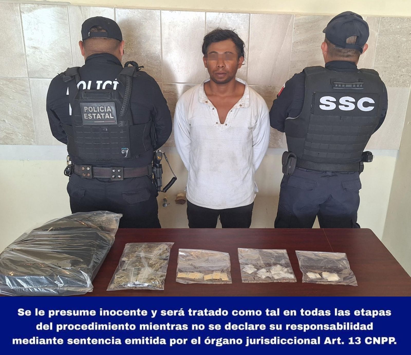 Detienen a Presunto Narcomenudista con Diversas Drogas en el Centro de Tulum