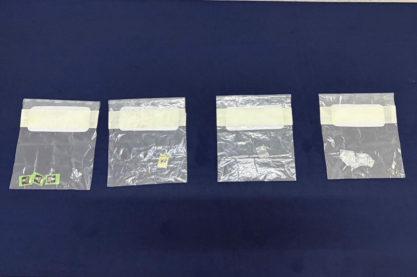 Tras la inspección, las autoridades le decomisaron siete bolsitas de plástico con fragmentos sólidos con características similares al cristal, tres bolsitas de plástico transparente de color verde, con fragmentos sólidos de color blanco con características similares al crack; una bolsita de plástico transparente con fragmentos sólidos de color blanco, con características similares a la cocaína.