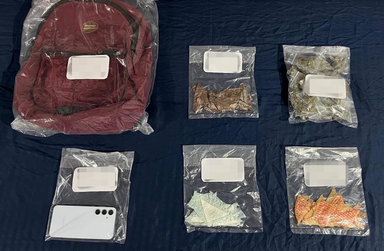 Durante la revisión, los agentes aseguraron 30 bolsitas de plástico con marihuana, 12 envoltorios triangulares con crack, 14 envoltorios con cocaína y 16 envoltorios con fragmentos cristalinos que podrían ser cristal. También se le confiscó un teléfono celular y la motocicleta en la que pretendía escapar.