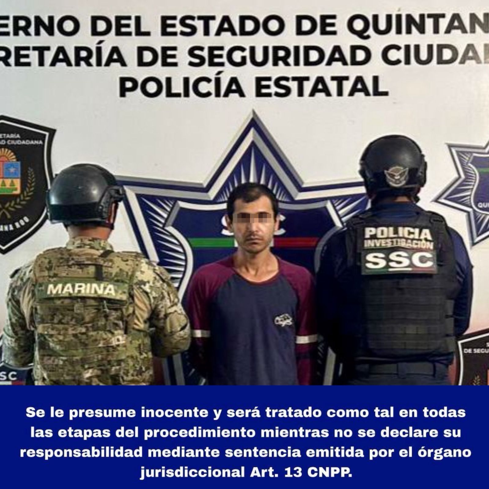 El arresto ocurrió en la calle Isla Margarita, entre Avenida República Dominicana y calle Isla Barbuda, en la supermanzana 251, fraccionamiento Paseos del Mar.