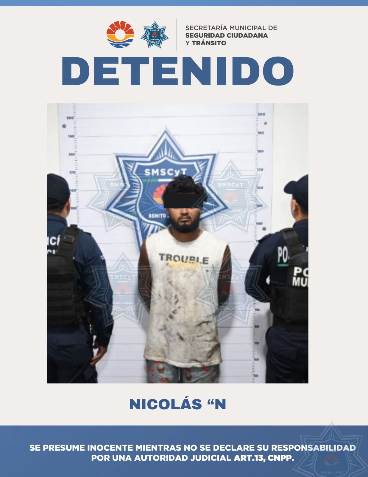 Cancún, 29 de julio. – Un hombre de 24 años fue detenido por elementos de la Secretaría Municipal de Seguridad Ciudadana y Tránsito (SMSCyT) de Benito Juárez, tras presuntamente asaltar con violencia a un taxista en la Supermanzana 202 de Cancún.