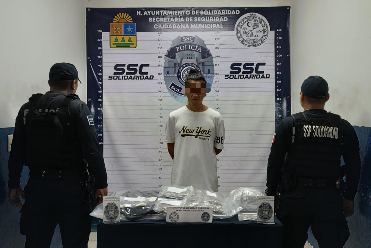 PLAYA DEL CARMEN, a 9 de noviembre.- Elementos de Seguridad Ciudadana de Solidaridad detuvieron a una persona del sexo masculino en la Avenida 45, entre la Avenida Constituyentes y calle 18 Norte, colonia Gonzalo Guerrero, en posesión de 21 envoltorios y 17 tiras de posibles narcóticos.