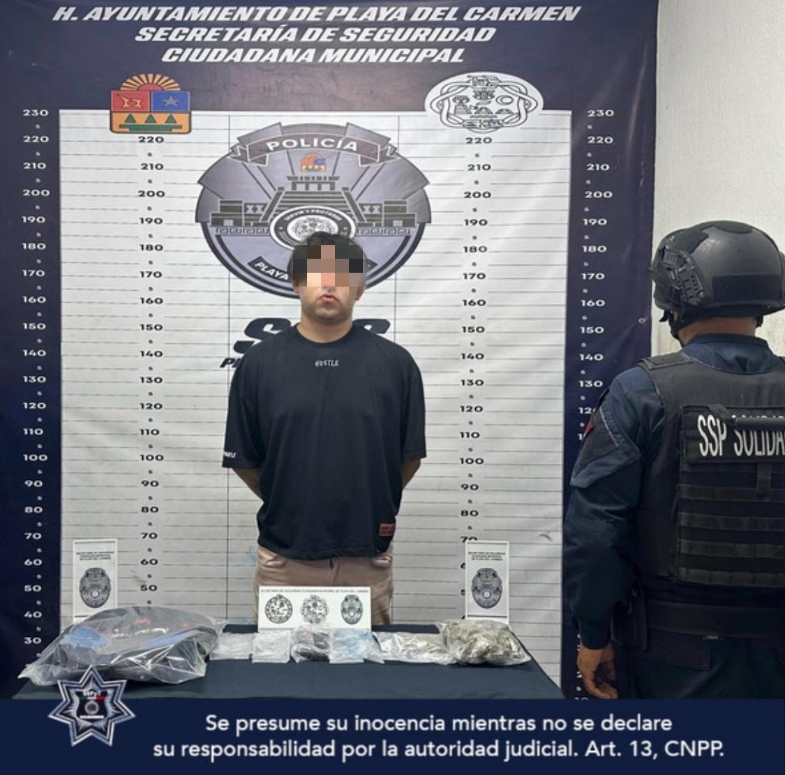 Playa del Carmen, a 02 de junio de 2025.- La Secretaría de Seguridad Ciudadana de Playa del Carmen detuvo a una persona por presuntos delitos contra la salud, en la colonia Ejido Norte. Durante un recorrido de vigilancia, policías municipales observaron a un individuo manipulando envoltorios con posibles narcóticos en el interior de un vehículo.