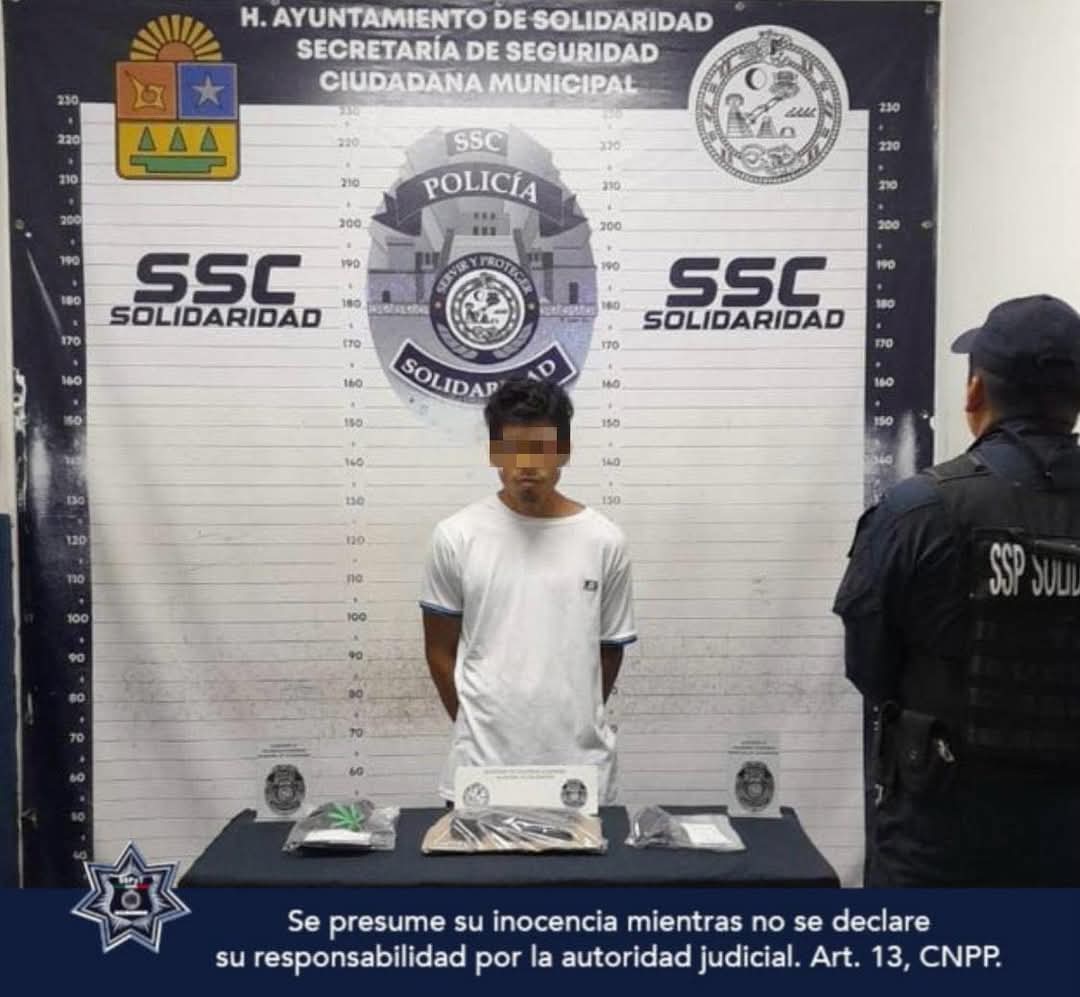 Playa del Carmen, a 02 de abril de 2025.- Elementos de la Secretaría de Seguridad Ciudadana de Playa del Carmen detuvieron a una persona del sexo masculino por su probable participación en tentativa de robo y portación de arma prohibida en el fraccionamiento Villas del Sol.
