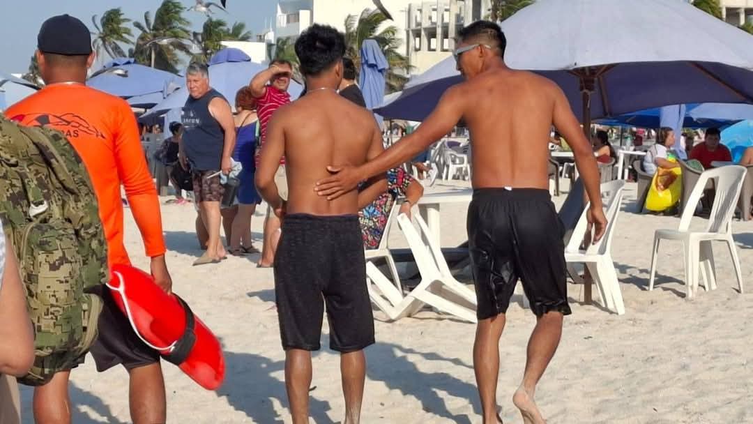 El hecho ocurrió en el malecón del puerto, cuando una mujer comenzó a discutir con uno de los sujetos, señalándolo de haberle tomado fotos sin su consentimiento mientras se encontraba en la playa en traje de baño.