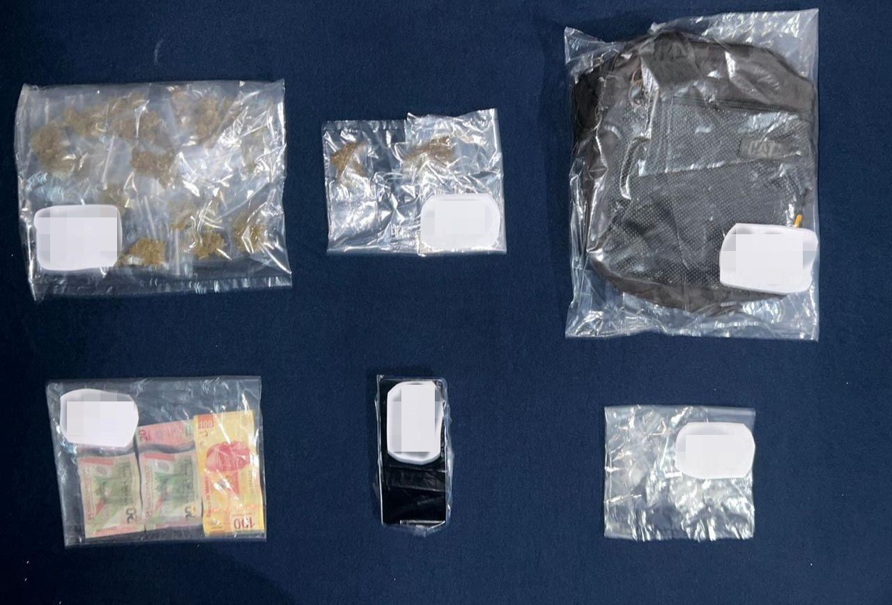 Durante la revisión, se le aseguraron 25 bolsitas con hierba verde con características de marihuana, 13 bolsitas con fragmentos sólidos similares al cristal, una mariconera, un teléfono celular, 140 pesos en efectivo y un vehículo Dodge I10 color negro, con placas de Quintana Roo.