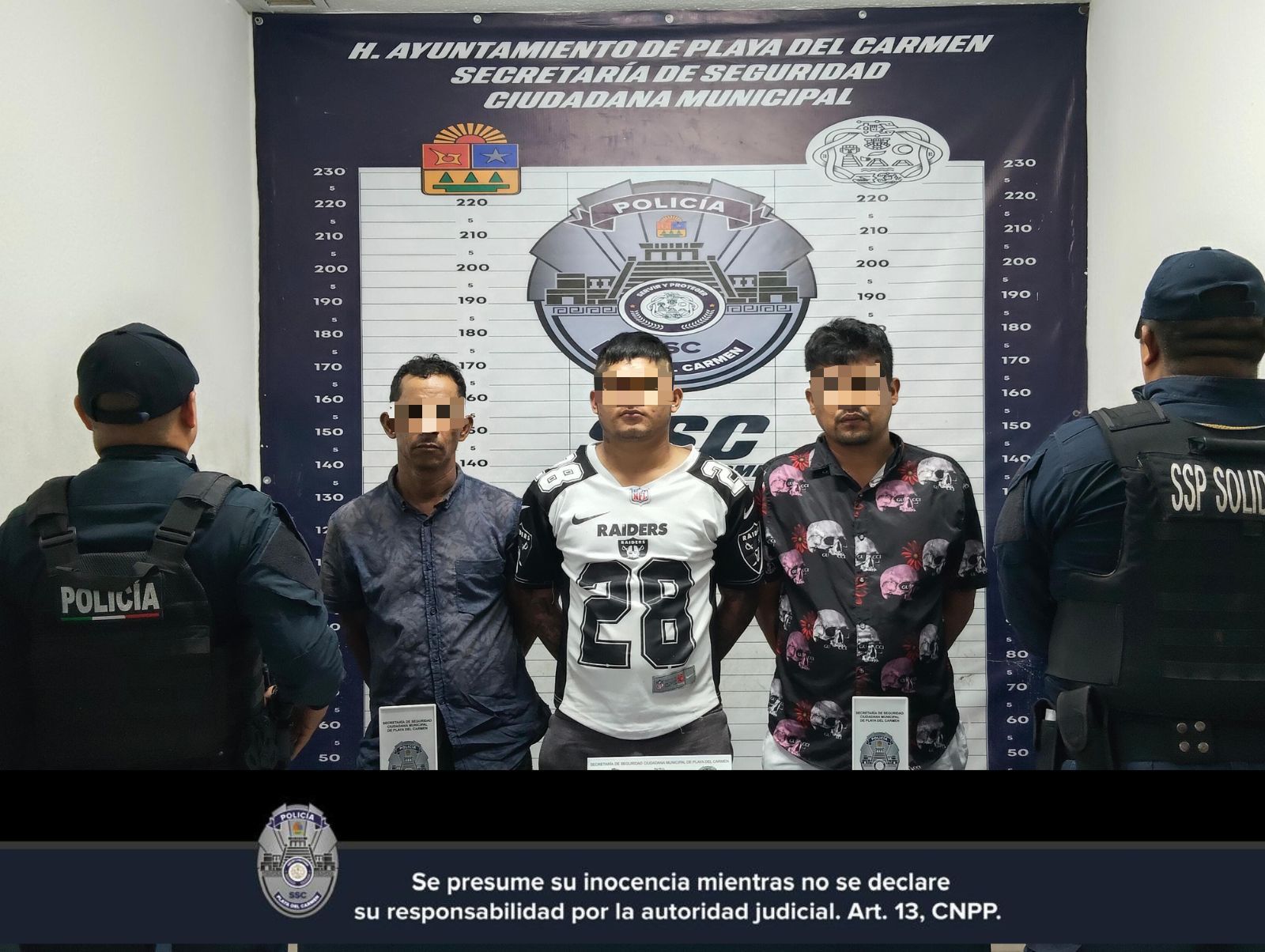 Detienen a Tres Sujetos por Presuntos Delitos contra la Salud en el Fraccionamiento El Petén en Playa del Carmen