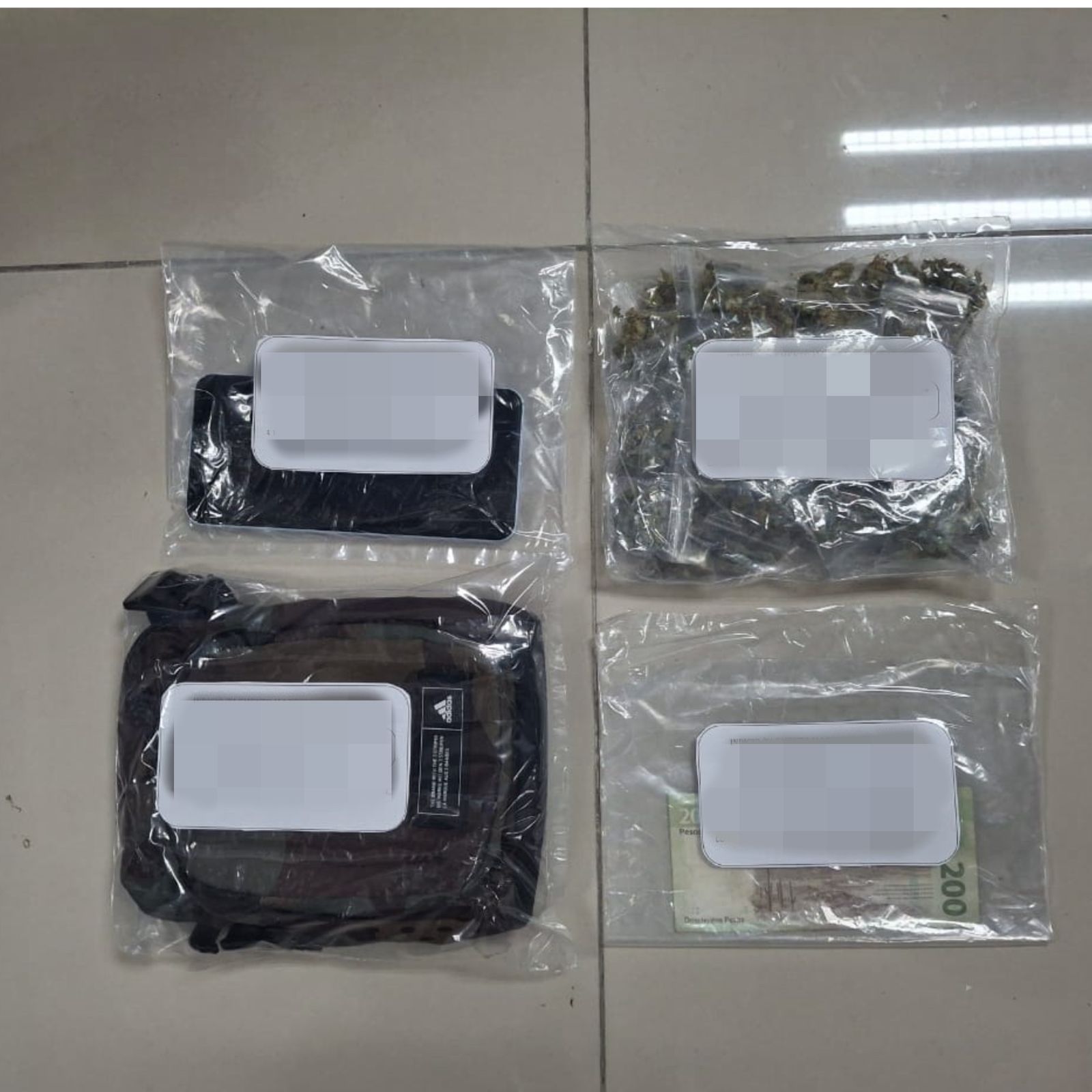 Durante la revisión, se le aseguraron una mariconera, las 32 bolsas de marihuana, un teléfono celular y 200 pesos en efectivo.