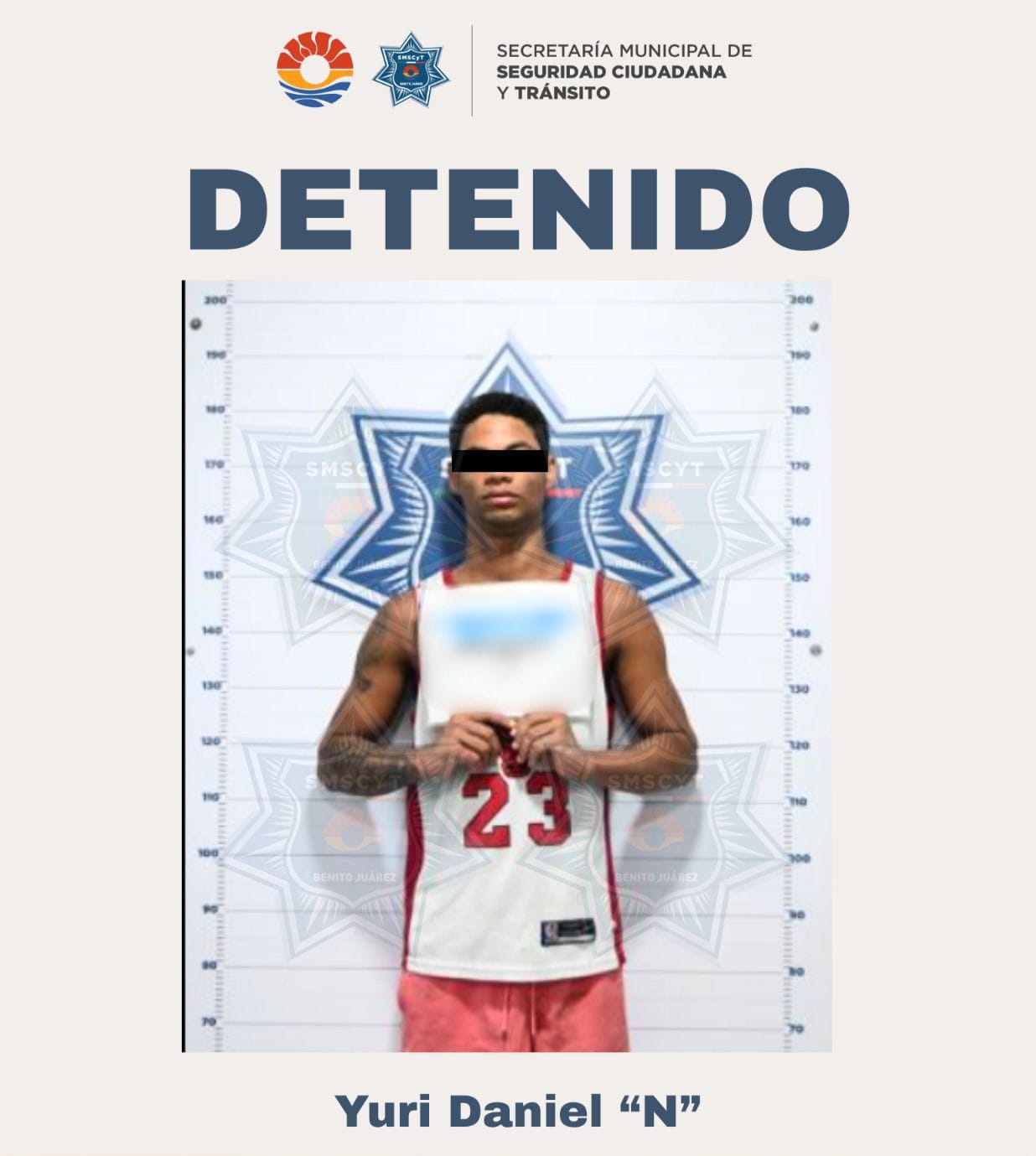 Cancún, 6 de julio.– Elementos de la Secretaría Municipal de Seguridad Ciudadana y Tránsito (SMSCyT) detuvieron a un joven de 24 años, identificado como Yuri Daniel “N”, por su probable participación en el delito de encubrimiento, tras ser sorprendido manejando un auto robado.