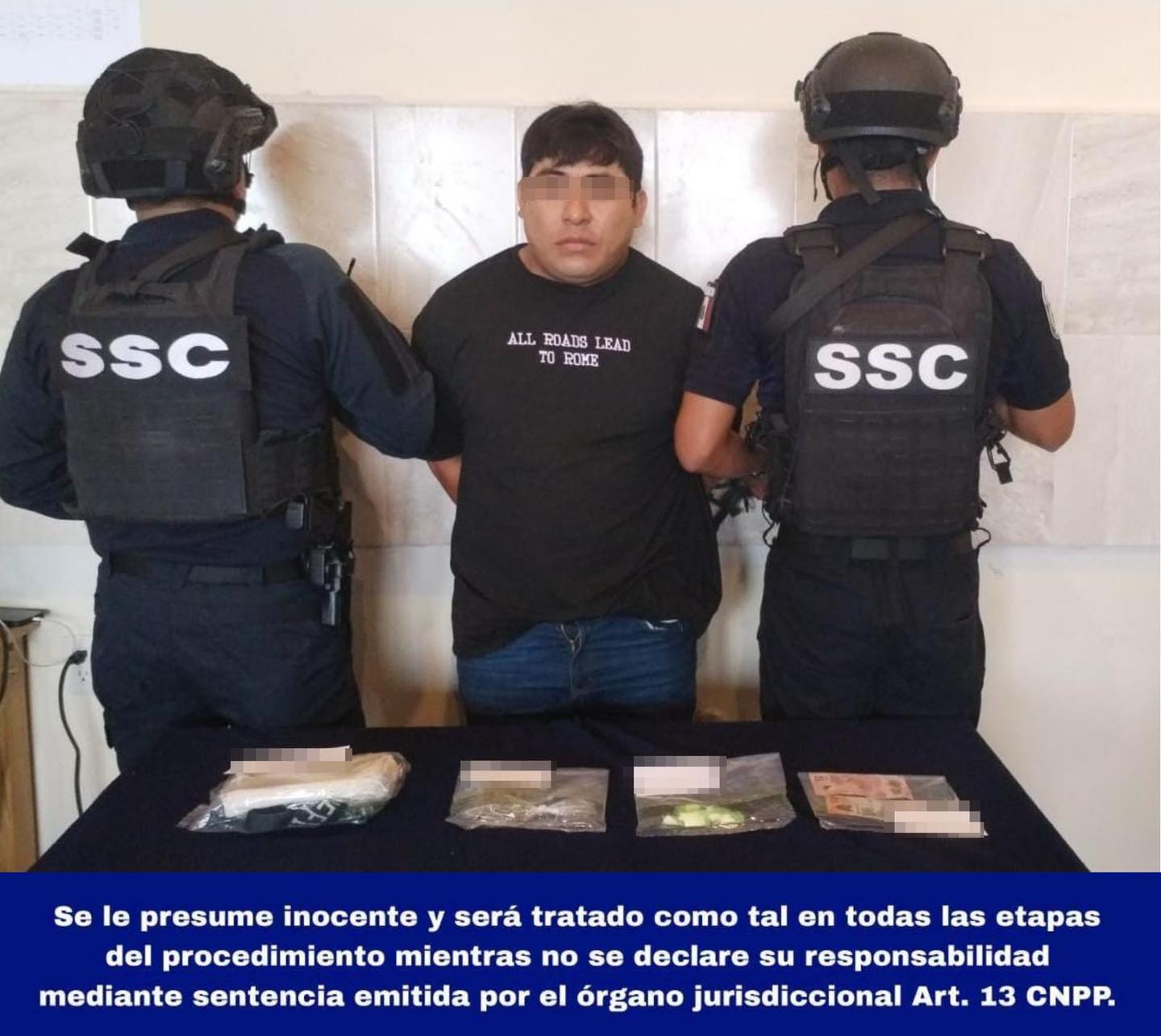 TULUM a 30 de marzo .- De acuerdo a un comunicado de la Secretaría de Seguridad Ciudadana dio a conocer que detuvieron y pusieron a disposición de la Fiscalía Especializada en Combate al Delito de Narcomenudeo a un supuesto integrante del grupo delictivo denominado XL aliado del Cártel Jalisco Nueva Generación en el municipio de Tulum.
