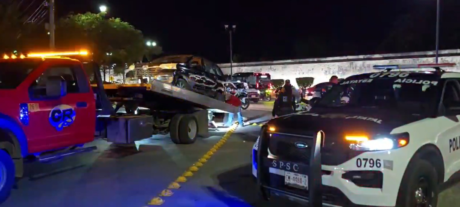 Policías Estatales le indicaron al conductor que se detenga desde la zona Ah Kim Pech, pero el conductor hace caso omiso y comenzó la persecución que terminó sobre la Circuito Baluartes, frente al IMSS; los policías tuvieron que colisionar con la patrulla a la camioneta Toyota para poder detenerlos.