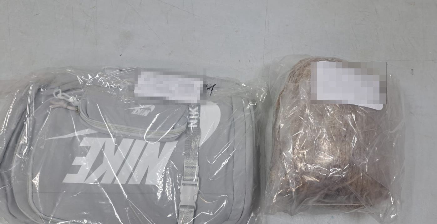 Tras el señalamiento del canino, los agentes procedieron a realizar una revisión preventiva a la mujer. Como resultado del pesonaje y la inspección, las autoridades aseguraron una mochila de color gris que contenía un paquete rectangular con hierba verde y seca, cuyas características son propias de la marihuana.