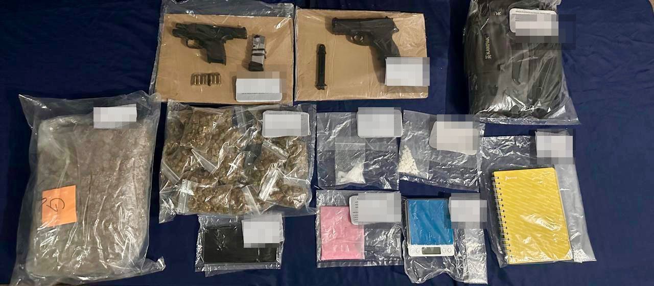 Durante la inspección, las autoridades le incautaron un arsenal de narcóticos, incluyendo: 26 bolsas y una bolsa grande con marihuana, una bolsa con fragmentos sólidos de crack, una bolsa con fragmentos de cristal y una bolsa con polvo rosa, con características similares a la droga conocida como tusi.