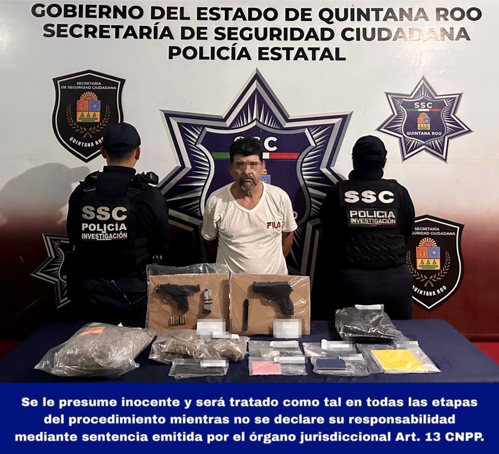 Detienen en Cancún a Hombre con Drogas y Arma de Fuego