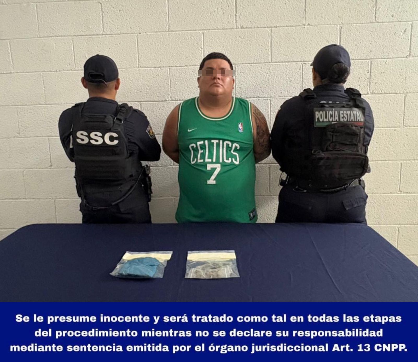 Cozumel, 2 de octubre.-Agentes de la Secretaría de Seguridad Ciudadana (SSC) detuvieron a un hombre identificado como Iván Aldair “N” por su presunta implicación en delitos contra la salud.