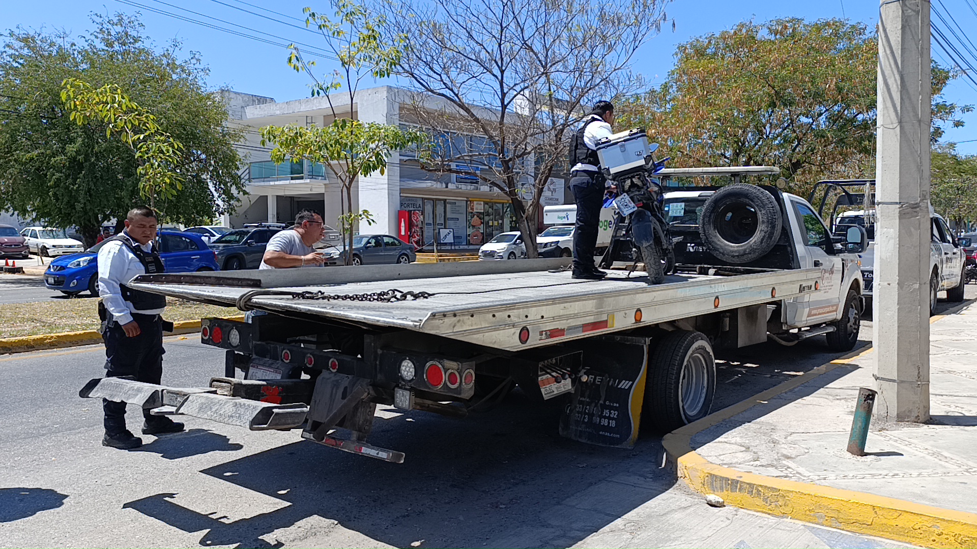 La motocicleta fue arrastrada al corralón, al quedar a disposición de la autoridad ministerial, con ayuda del operador de grúa particular.