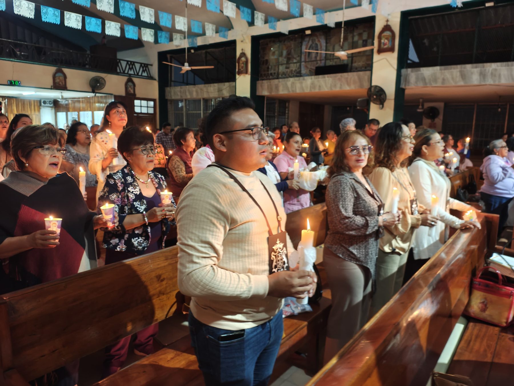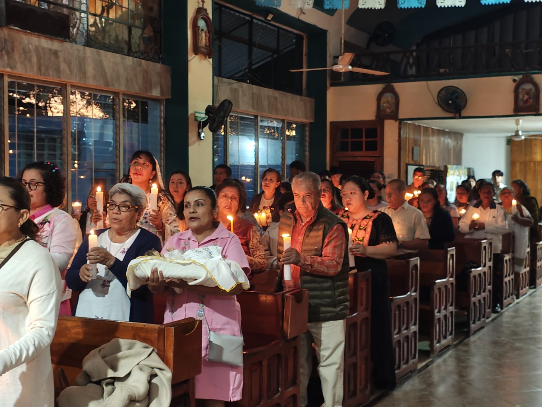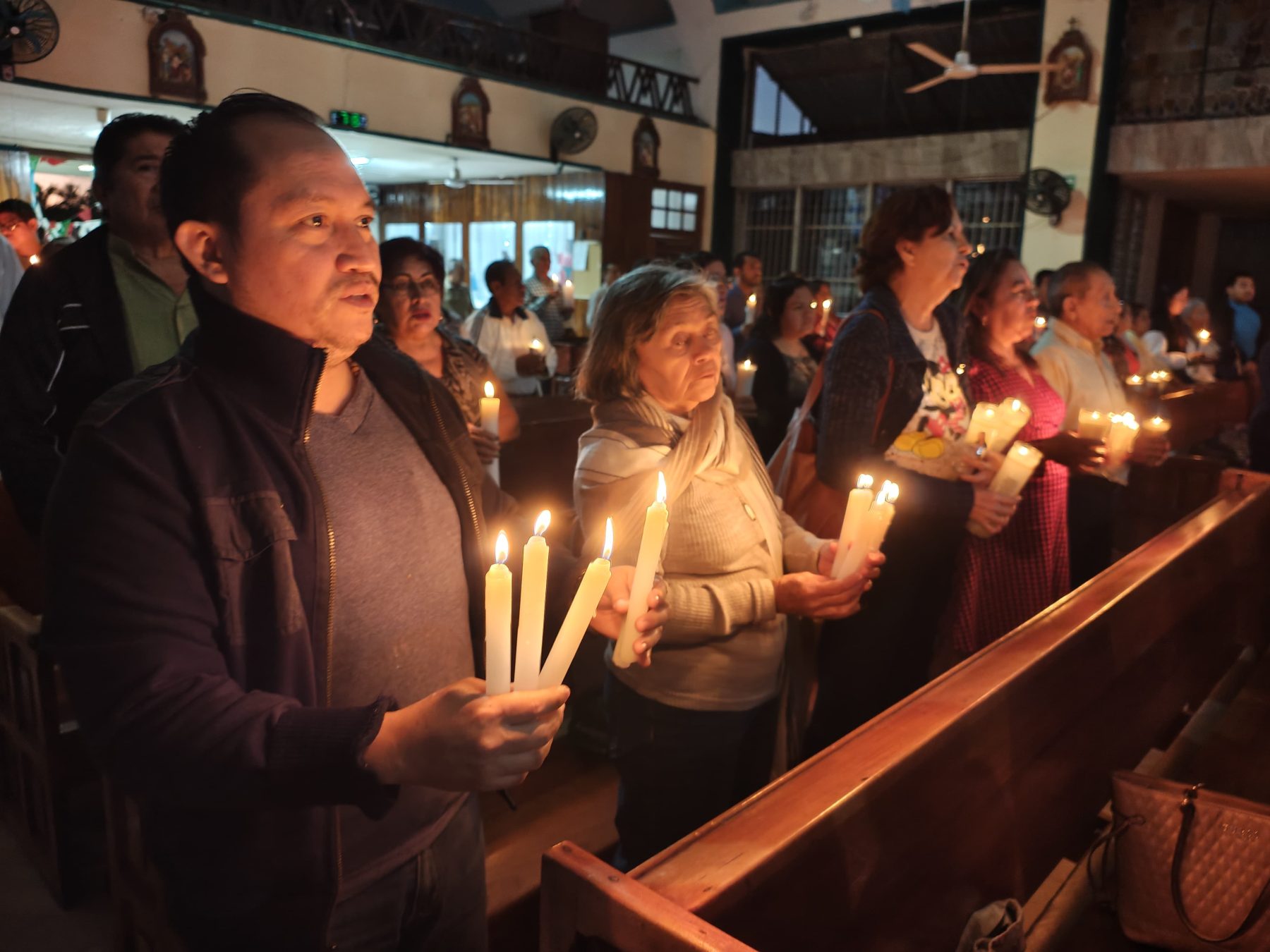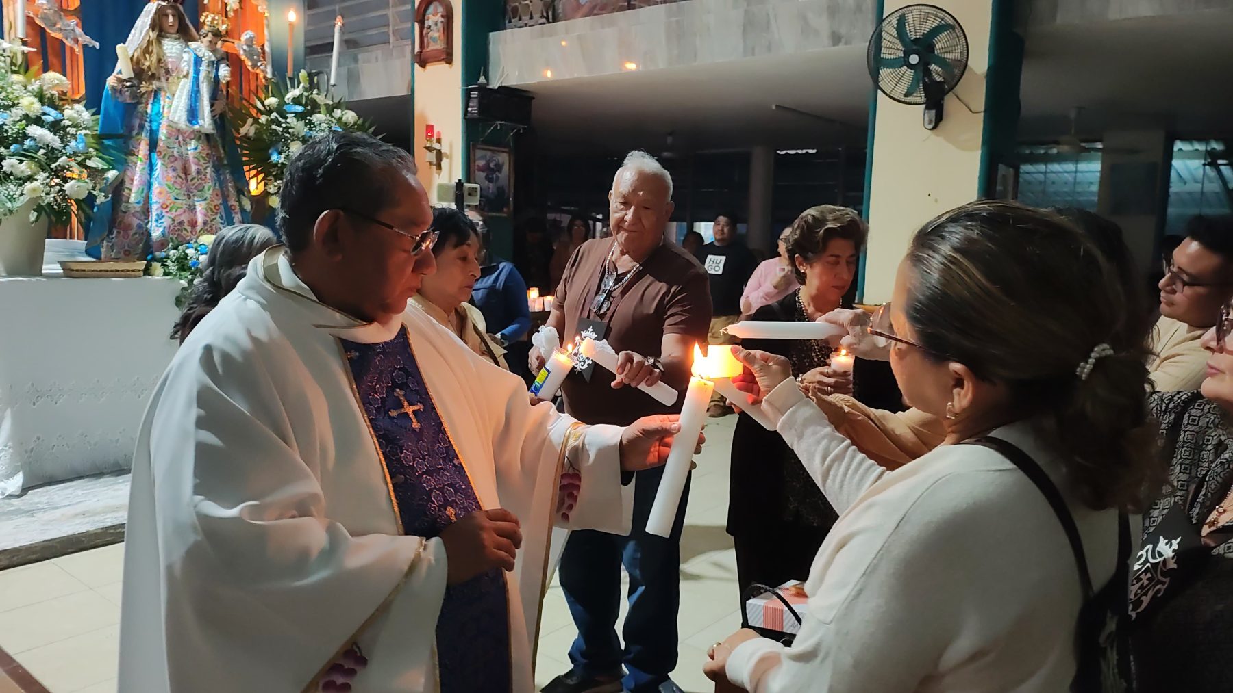 El rezo inició a las 17:30 horas con la veneración del Niño Dios, seguido de la bendición de las velas, un momento cargado de simbolismo. El rito fue encabezado por el párroco David Martín Leal, quien explicó que encender la vela es un signo de fe y de esperanza en medio de las dificultades que enfrenta la sociedad.