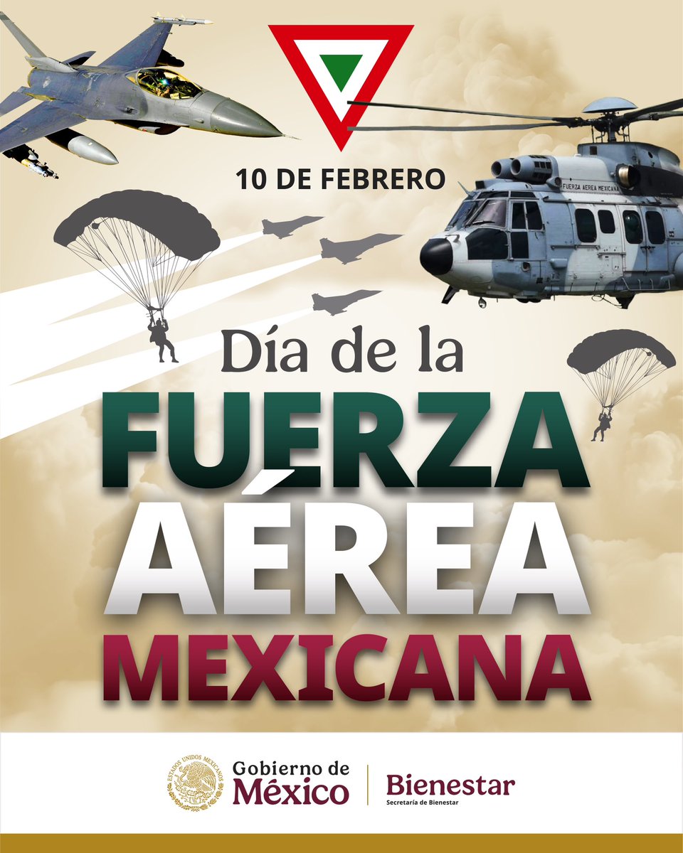 • Conmemorando el 10 de febrero, fecha en la que se elevó al nivel de Fuerza Armada al Arma de Aviación Militar, celebramos la importancia de la Fuerza Aérea Mexicana en la defensa, seguridad y misiones humanitarias que contribuyen al bienestar de la nación.