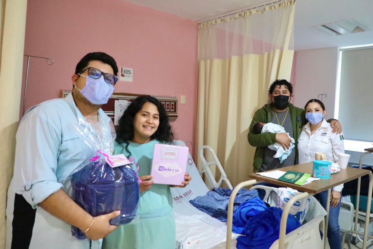 El director de Servicios de Salud del DIF, Arturo Melgarejo, en representación de Eduardo Asencio entregó los kits a los padres de los recién nacidos, estos contienen toallitas húmedas, cremas y otras soluciones para brindar los cuidados esenciales a los bebés, junto con una frazada y una sabanita para garantizar su bienestar desde sus primeros días de vida.