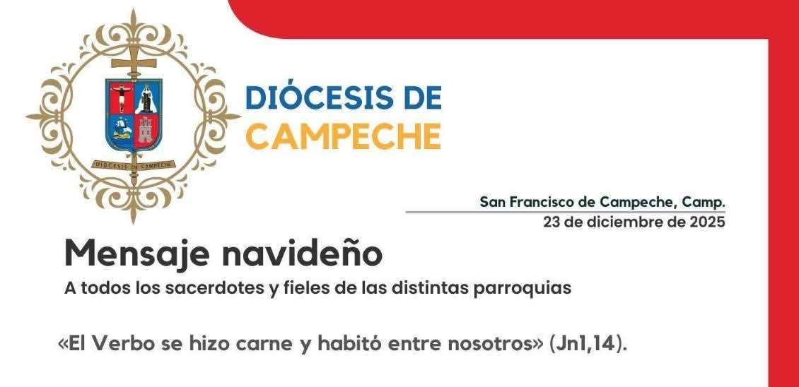 San Francisco de Campeche, Cam., 24 de diciembre.- En su Mensaje Navideño, la Diócesis de Campeche, refirió que no podemos cerrar los ojos ante la realidad que nos duele, ya que “vivimos tiempos difíciles, marcados por heridas de violencia, inseguridad y miedo”.