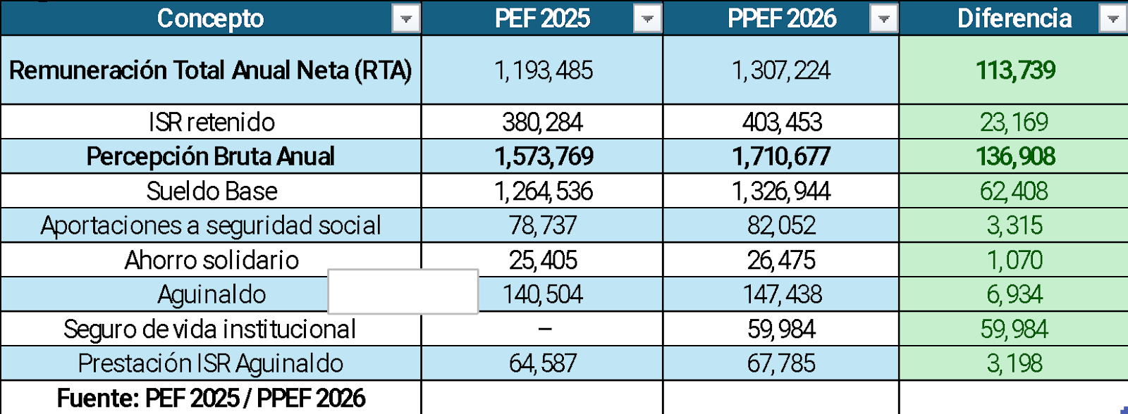 Además, su sueldo base sube 62 mil pesos, el aguinaldo crece casi 7 mil, y recibirán un nuevo seguro de vida de casi 60 mil pesos.