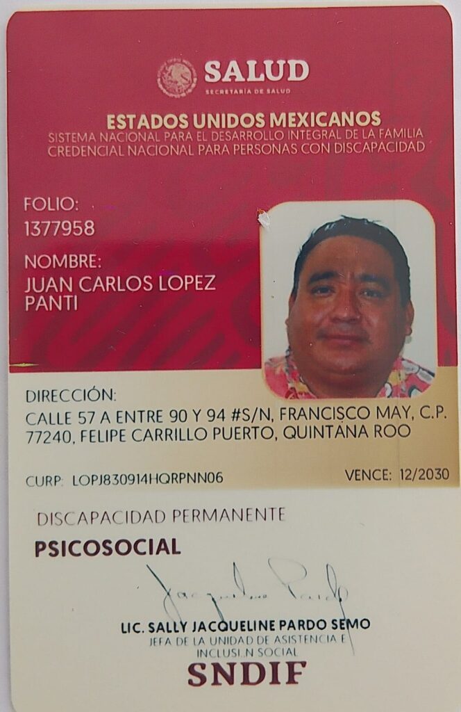 A través de ese documento, Juan Carlos López Panti, estudiante de Derecho de esa institución, recuerda a los directivos universitarios que cuenta “con Discapacidad Permanente de tipo psicosocial, misma que he acreditado desde hace tiempo mediante certificado médico del CRIQ DIF Estatal, notas médicas del IMSS por recaídas graves, y recientemente mediante mi Credencial Nacional de Discapacidad, la cual anexo al presente.