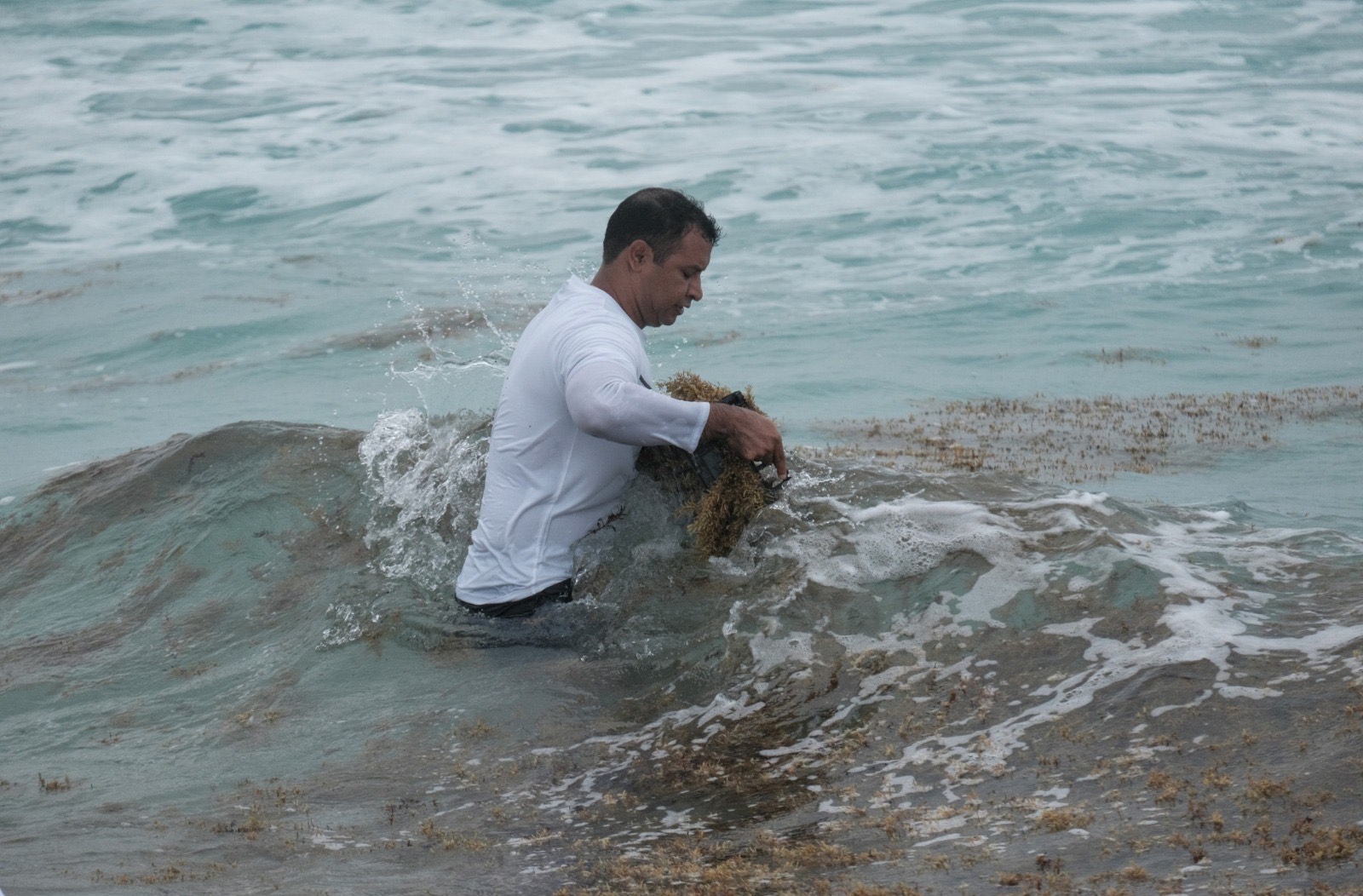 acuerdo con el coordinador de la Red de Monitoreo de Sargazo en Quintana Roo, Esteban Amaro hace 2 meses se contabilizaron 50 millones de toneladas métricas de sargazo flotando entre África y la península de Yucatán, de ese volumen, aproximadamente el 1 por ciento llegó al Caribe Mexicano y, de esa fracción, un 10% arribó directamente a las costas, lo que representa más de 75 mil toneladas acumuladas, es decir, que tenemos prácticamente el triple del alga respecto a 2024.