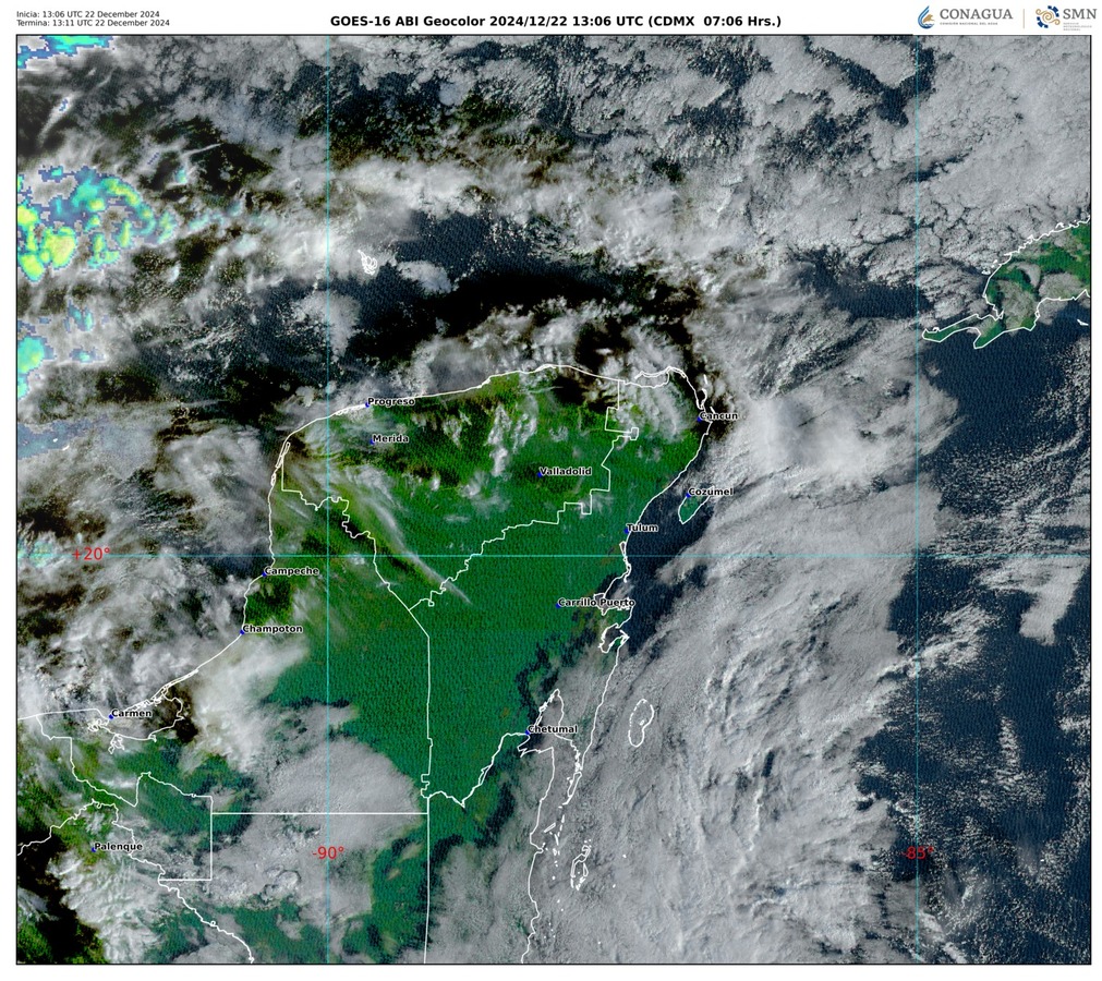 El pronóstico para Quintana Roo indica que el ingreso de aire húmedo del mar Caribe ocasionará cielo medio nublado a nublado, con probabilidad de intervalos de chubascos de 5 a 25 mm en la entidad. Ambiente cálido y viento de componente norte y noreste de 20 a 30 km/h con rachas de 40 a 50 km/h sobre las costas del estado.