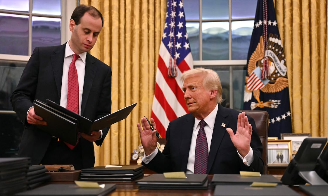 Esta improvisada rueda de prensa tuvo lugar mientras el presidente firmaba sus primeros decretos, apenas unos minutos después de haber regresado, ya como presidente, a la Casa Blanca.