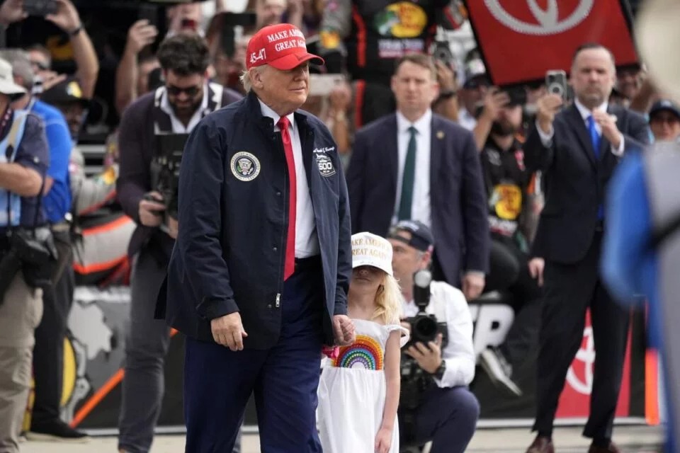 Tomando de la mano a su nieta, Trump dio una vuelta por la pista de 2.5 millas, recibiendo una fuerte ovación del público, mientras se escuchaba el himno nacional, según los medios, y también saludó a los pilotos de esta carrera anual.