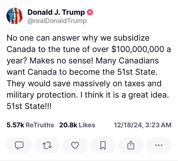 Donald Trump Insiste en Integrar a Canadá como el Estado 51 de EE UU