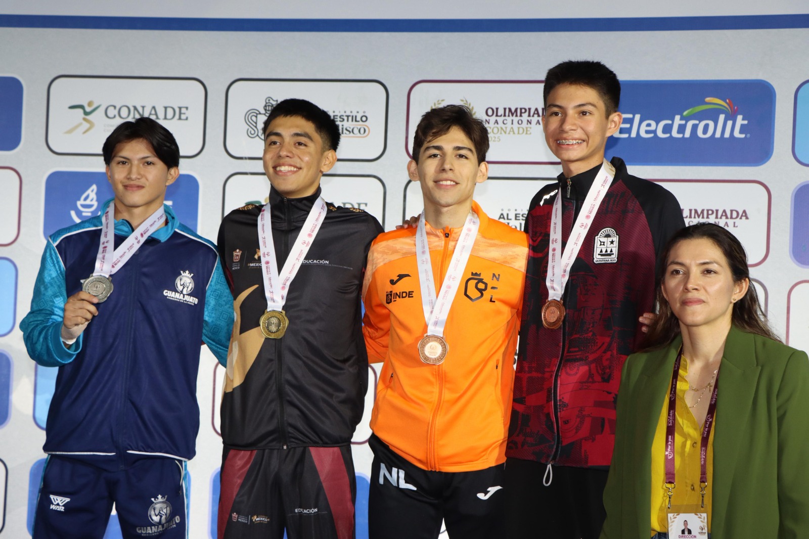 Por su parte, la medalla de bronce en esta jornada disputada en el Domo Alcalde de la ciudad de Guadalajara, Jalisco, fue conseguida por Oliver Flores Cahuich, quien compartió el tercer sitio con el representante de Nuevo León, mientras que el oro fue para el Estado de México y la plata para Guanajuato.