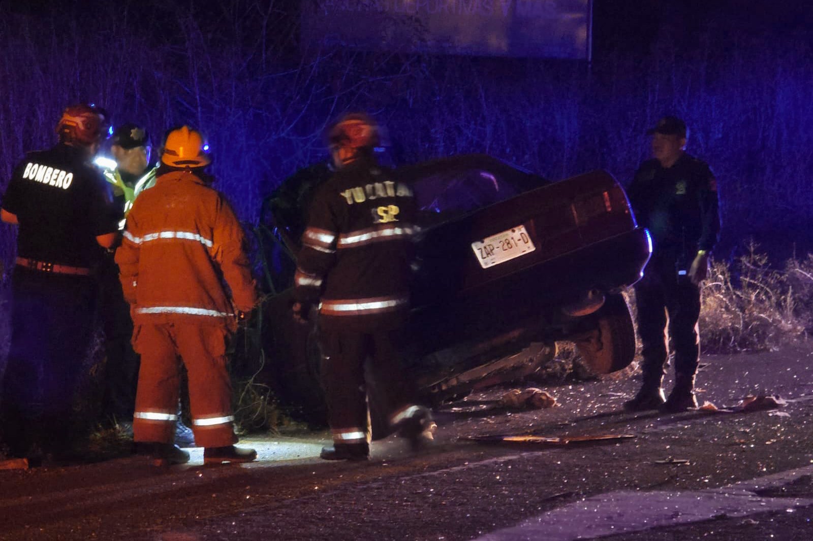 MÉRIDA, YUC.- 10 de febrero.- Dos personas fallecieron y una más quedó gravemente lesionada tras chocar de frente un vehículo Tsuru contra un autobús de transporte de personal, accidente ocurrido en el kilómetro 10 de la carretera Mérida-Tetiz.